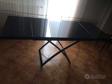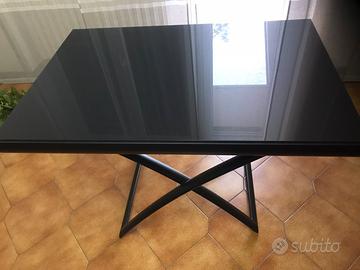 Tavolo completamente nuovo. Tavolino modello DAKOTA, struttura in metallo e piano in vetro o in ceramica. Allungabile e regolabile in altezza.