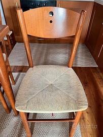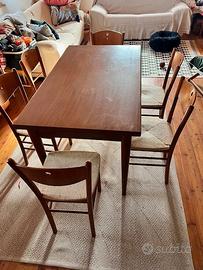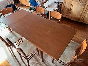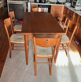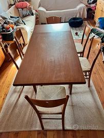 Tavolo in legno per 6/8 persone in ottime condizioni, lungo 138cm, largo 80cm, alto 80cm, con allunga estraibile di 45cm, completo di sei sedie coordinate con sedile rivestito in corda chiara