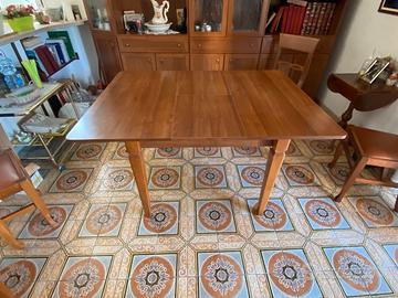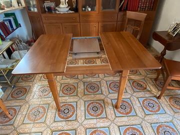 Vendo tavolo e 4 sedie. Il tavolo è allungabile come da foto. Le misure da chiuso sono 100x100 cm, una volta aperto diventa 140x 100 cm