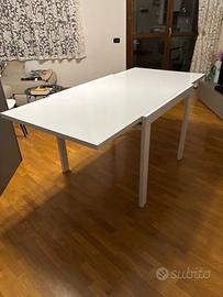 Tavolo quadrato dalle dimensioni 90x90 quando è chiuso; facilmente allungabile, diventa 90x180. Il tavolo, per chi vorrà consultare la scheda tecnica e le specifiche, è il modello Mercurio di Mondo Convenienza (CODICE: 03OE).
