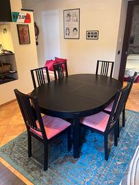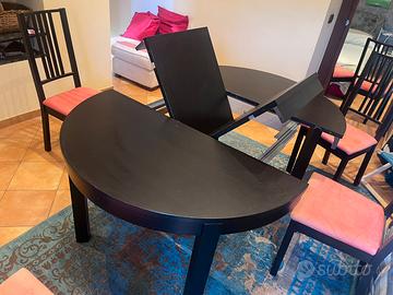 - Tavolo rotondo facilmente allungabile per 4/6 posti a sedere 115x115 chiuso, 115x165 aperto. - 6 sedie con fondo imbottito. In ottime condizioni con normali segni di utilizzo. Meccanismo di allungamento e chiusura comodissimo in cinque secondi. Super occasione, svendo perché mi è già arrivato quello nuovo. Solo ritiro Nervi.