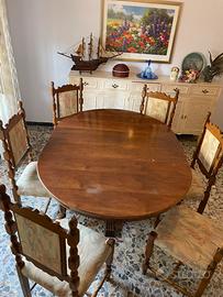 Tavolo rotondo chiuso diametro di 114,5 cm con prolunga di 46,5 Tavolo allungato 162 x144,5 Le 6 sedie sono incluse PREZZO TRATTABILE Già smontato, ma il ritiro è a carico dell’acquirente