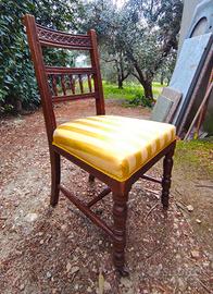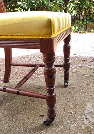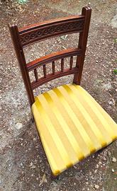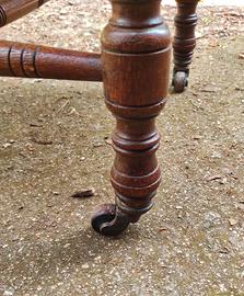 Tavolo di legno con 4 zampe e una rotella per ogni zampa. Chiuso misura 110x104 cm Aperto misura 110x144 cm Si allunga con un meccanismo a manovella e una prolunga. Anche le 6 sedie hanno le rotelle montate sulla zampe anteriori. Tavolo e sedie sono usati ma in buone condizioni e si trovano a livello strada.