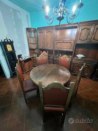 Tavolo da soggiorno / sala da pranzo allungabile, originale anni ’60/’70, con 6 sedie abbinate, facente parte dello stesso arredo veronese della parete attrezzata.