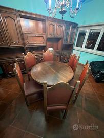 Tavolo da soggiorno / sala da pranzo allungabile, originale anni ’60/’70, con 6 sedie abbinate, facente parte dello stesso arredo veronese della parete attrezzata.