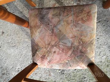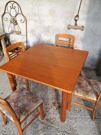tavolo con 4 sedie di cui una da aggiustare sedie un po' tarmate con segni di usura misura chiuso 120 cm ×120 cm aperto 120×cm ×150cm