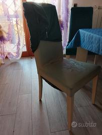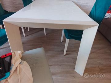 Tavolo allungabile (max 260 cm) bianco vetro bianco cm. 180 x 90 x 75 6 sedie elephant usurate sulla seduta