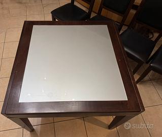 Tavolo in legno e cristallo aluungabile. Sedie legno e pelle. Tutto in perfette condizioni.