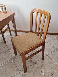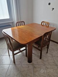 Vendo tavolo in legno allungabile con sei sedie. Misure: 112x112 da chiuso, 112x150 da allungato.