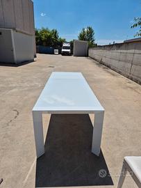 Vendo tavolo bianco in ferro e vetro più 7 sedie. Il tavolo misura 180x90 da chiuso e 260x90 da aperto. Il tavolo è in ottime condizioni, solo le gambe sono rovinate invece le sedie sono un po' rovinate. Vendo a 40 euro trattabili