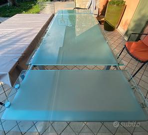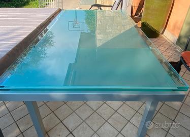Meraviglioso tavolo allungabile in cristallo della marca Bonaldo. Chiuso 1,80, allungato da un solo lato 2,10 allungato in entrambi i lati 2,40. Zampe in acciaio. Tavolo perfetto senza segni. Tenuto sempre con estrama cura.