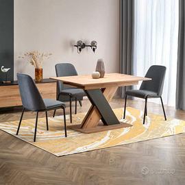 Il tavolo moderno allungabile Mark incarna l'eleganza e la praticità. Le sue gambe ad X, una in rovere e l'altra nera, conferiscono un contrasto dinamico e contemporaneo. Il piano impiallacciato in rovere aggiunge un tocco di naturalezza e calore all'ambiente. La particolarità dell'allunga, che si estrae e si posiziona al centro con facilità, rende questo tavolo moderno allungabile estremamente versatile e adatto a ospitare comodamente un maggior numero di commensali quando necessario. Grazie al suo design raffinato e alla sua funzionalità intuitiva, il tavolo allungabile moderno Mark è la scelta ideale per creare un ambiente accogliente e contemporaneo in sala da pranzo.