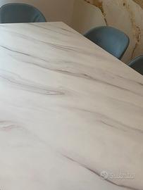 Tavolo da pranzo allungabile gold- whitem in vetro effetto marmo bianco con arble e gambe dorate, forma rettangolare, estendibile, numero invitati 12 coperti, apribile 260 cm, 180 cm per 100 cm Pagato 1.200 euro