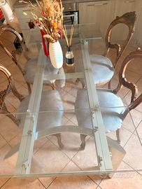 Tavolo di cristallo in perfette condizioni, lunghezza 189cm e larghezza 90cm. Allungabile fino a 230/240cm 4 seggiole imbottite e rifinite a mano. Marca tavolo Tonin Modello tavolo Arcos Il ritiro sarà a carico dell’acquirente.