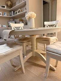 Tavolo allungabile 110/155 modello rosentorp con prolunghe comprese piu 4 sedie sempre modello rosentorp totale 320 € Possobilità di comprare anche solo il Tavolo a 250€ Il tavolo e in piu che buono stato ,ha solo un piccolo graffio che ho messo in foto
