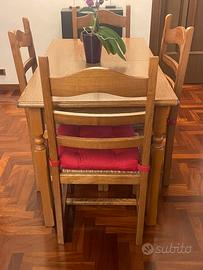 Tavolo allungabile in legno per 6 persone con 4 sedie in ottime condizioni. Ritiro a carico dell'acquirente