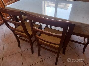 Vendo tavolo allungabile misura cm 85 X 130-170, con 6 sedie con seduta impagliata, in vero legno massello.