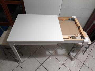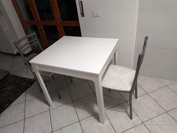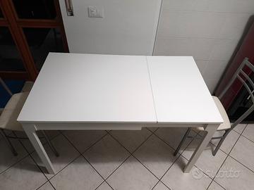 Vendo tavolo allungabile in legno bianco, allungabile, usato pochissimo e due sedie in metallo. Le misure del tavolo sono 70x80 cm chiuso e 70 x120 cm aperto. Altezza 75 cm Vendo per inutilizzo Solo ritiro a mano, non spedisco