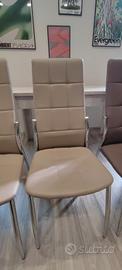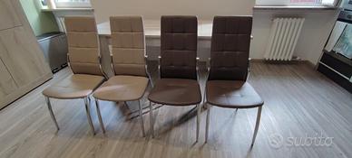 Tavolo allungabile da cm.137 a cm.185 altezza cm.80 e n.4 sedie di due colori diversi usato in buone condizioni con alcuni segni di usura.