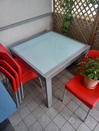 Vendo tavolo di vetro (90 x 90 cm) allungabile e set di 4 sedie da esterno. Buone condizioni sia del tavolo che delle sedie. Ritiro a UDINE (33100) , pagamento in contanti. Prezzo dell'interno set 150 euro trattabili. Ottime per uso all'esterno