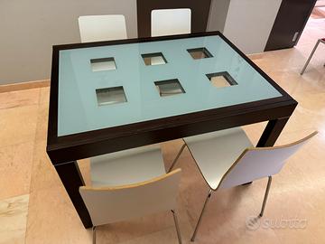 Tavolo allungabile misure 120(240) x 90 cm Tavolino caffè misure 100x60x40 cm Struttura in faggio, molto resitente, piani in vetro Siatema Apertura molto semplice In ottime condizioni