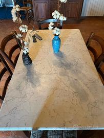 Tavolo effetto marmo allungabile come da foto. Praticamente nuovo, utilizzato un paio di volte. Disponibili per la vendita a parte anche le sedie. Ritiro a carico dell'acquirente.
