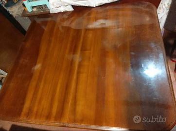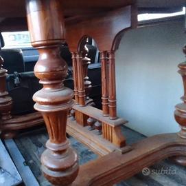 Vendo,a prezzo regalo,con molta urgenza importante tavolo Enrico II Francese in massello di noce appartenente alla seconda metà del XIX secolo. Il piano ha una forma rettangolare con gli angoli smussati ed è sostenuto da quattro piedi a bottiglione raccordati da una crociera centrale. Il tavolo può essere allungato a strappo aggiungendo due prolunghe da 60 cm (non credo originali)