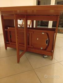 tavolo/consolle allungabile Foppapedretti con otto sedie site al suo interno e facilmente prelevabili tramite sportello laterale visibile in foto. Ottimo stato, condizioni pari al nuovo, usato pochissimo tolgo per cambio arredamento. il tavolo è corredato di due ruote (bloccabili) per facilitare lo spostamento. non traballa ed è molto stabile. in modalità chiuso la consolle è lunga 40 cm x 100 con altezza di 75 cm. aperto a metà la lunghezza da 40 diventa 106 cm mentre totalmente aperto ha una lunghezza di 180 cm. disponibile per ulteriori info o foto.