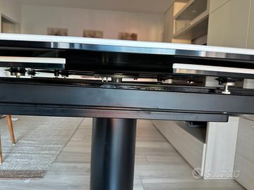 Vendo Tavolo allungabile di "La Seggiola" Shop con struttura in metallo verniciato nero, piano in vetro ceramica. Dal design elegante ed accattivante, ha 1 moderno sistema di allungo e si si estende fino a L 180 cm. Dotato di guide in alluminio top quality, è l'ideale per la vostra zona living. Misure: L 120/180 x P 89 x H 78 cm. Acquistato il 2024, ancora in garanzia.