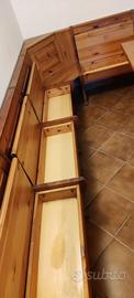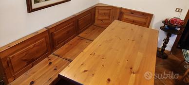 Vendo x inutilizzo tavolo allungabile in legno massello con giropanca con sedute contenitore. Misure tavolo 180x80 più 2 prolunghe da 30 cm l'una. Misure giro panca cm 280x130 ... Prezzo euro 1000 trattabile
