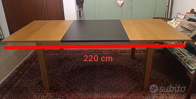 Misura 140 cm chiuso e arriva a 220 cm con le due prolunghe da 40 cm.
