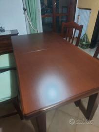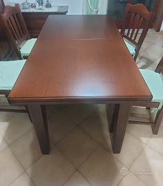 Tavolo in legno massiccio, 158 × 85, allungabile, completo di 10 sedie, color noce, affare!!! Per info contattare in privato, prezzo trattabile.
