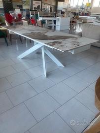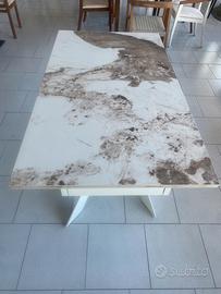 Tavolo Allungabile struttura in laccato verniciato opaco bianco, piano ed a lunghe in Cristal ceramica, effetto marmo gold, il tavolo misura 90x160 allungabile fino a 240 cm
