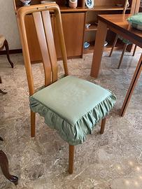 In vendita un solido ed elegante set completo per sala da pranzo, in perfetto stile classico vintage degli anni '70/'80, ottimamente conservato. Il set è composto da un tavolo allungabile in legno massiccio, rifinito a specchio, e da quattro sedie coordinate. Un pezzo di arredamento d'autore, pronto per essere inserito in una casa che apprezza la qualità e il design intramontabile. Punti di forza: • Tavolo Allungabile: La caratteristica fondamentale. Il tavolo è dotato di un solido meccanismo a scorrimento in metallo (vedi foto dettagliata dell'estensione), che permette di raddoppiare la superficie di lavoro. (Verificare se l'estensione è interna o esterna). • Set Completo: Un'opportunità unica per acquistare un kit abbinato e pronto all'uso. • Legno di Qualità: Struttura in legno massiccio, con una finitura lucida che ne esalta le venature (possibile ciliegio o faggio tinto). • 4 Sedie Coordinate: Con il loro design ergonomico e le iconiche imbottiture arricciate in tessuto verde koordinato, sono pulite e in ottime condizioni. • Stato Conservativo: Ottimo stato generale. Dettagli Tecnici: • Tipologia: Set tavolo + 4 sedie. • Stile: Vintage Classico / Mid-Century. • Materiale: Legno massiccio, metallo (meccanismo), tessuto. • Meccanismo: Allungabile con guide metalliche a scorrimento (come da foto dettagliata). Condizioni di vendita: • Prezzo: euro 280 (trattabili) • Ritiro a carico dell'acquirente: L'oggetto si trova a Parma. È richiesto il ritiro a mano a causa delle dimensioni. No spedizione.