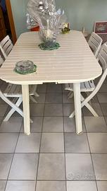 Tavolo allungabile in legno e sedie in resina
