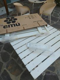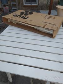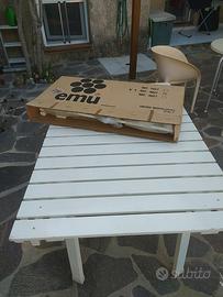 Tavolo per esterno allungabile marca emu in legno massiccio. Le dimensioni sono 136x90 senza estensioni, con estensioni 210x90. Il tavolo essendo in legno è pesante.