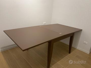 Tavolo allungabile in legno massello color cioccolato. Fino a 12 persone. Misure da chiuso: 104x104 Misure da aperto: 208x208 In ottime condizioni.