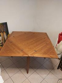 Splendido tavolo quadrato in noce chiaro, allungabile con un pratico sistema senza prolunghe, visibile in foto, gambe a sciabola. Misure chiuso: 100x100 cm. Aperto 142x142 cm. Altezza 80 cm. Un vero affare!!!!
