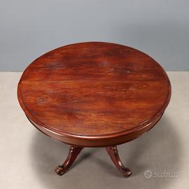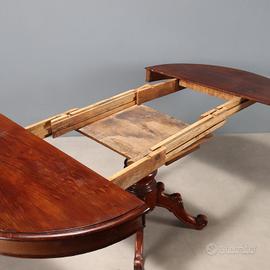 Tavolo allungabile in rovere e pioppo tinto noce. Piano tondo sorretto da gamba centrale tornita, poggiante su quattro piedi mossi e intagliati, culminanti a ricciolo. Due prolunghe in multistrato presenti. Italia, fine XIX Secolo. Codice: ANTATA0308683 Condizione prodotto: Prodotto che a causa dell'et e dell'usura richiede interventi di restauro e ripresa della lucidatura. Cerchiamo di presentare lo stato reale del mobile nel modo pi completo possibile con le foto. Qualora alcuni particolari non risultassero chiari dalle foto, fa fede quanto riportato nella descrizione. Misure: Largh.:210.00 cm, Alt.:80.00 cm, Prof.:0.00 cm QUESTO ARTICOLO E' DISPONIBILE PRESSO IL NEGOZIO DI CAMBIAGO Venditore: Barbara (dal Luned al Venerd : dalle 9:00 alle 19:00, Sabato: dalle 10:00 alle 19:00) Per maggiori informazioni contattateci su Whatsapp. Disponibile ad inviare video o foto integrative su Whatsapp Di Mano in Mano, Negozio dell'usato di Cambiago, via Castellazzo 8. Oltre 4000mq espositivi, tra usato, vintage, modernariato, antiquariato, arte e libri. Esplora il nostro portale mercatiniusato.org per scoprire centinaia di arredi usati.