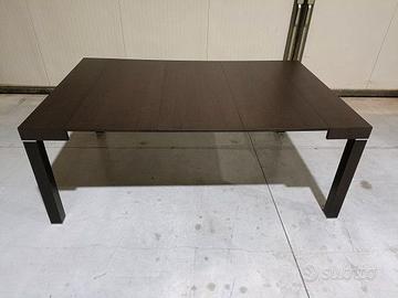 Tavolo allungabile in rovere tinta moro di dimensioni 130x50x76 (cm), dotato di tre prolunghe 130x50 (cm).