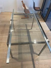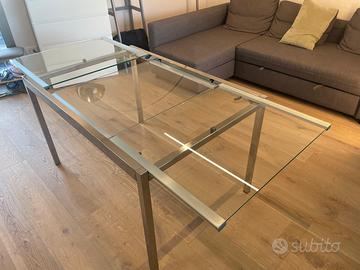 Tavolo Ikea Glivarp estensibile / allungabile Misure 125x85 x max 6 persone Aperto 188x85 x max 8 persone Il tavolo presenta un graffio sul vetro Con sedie Tobias 4 complete di copri sedia . Una sedia segnata ma ancora utilizzabile .