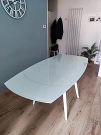 tavolo allungabile in vetroceramica con piedi in metallo bianchi...misure 120x90/180x90...come nuovo...si apre con una sola mano...