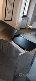 Gambe in acciaio anodizzato,ripiano in vetro opaco nero.