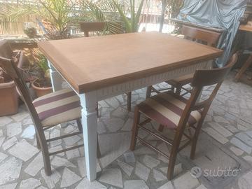 tavolo allungabile in legno con quattro sedie tappezzeria nuova.. stile provenzale.. misura tavolo chiuso 140 x 80 aperto 200 x 80.. zona Alessandrino
