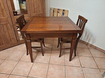 vendo tavolo allungabile +2 sedie,il tavolo chiuso é 1 mt× 1mt allungato 2mt ,presenti alcuni segni di usura sul piano, ma è robusto e stabile ,ritiro a mano niente spedizione