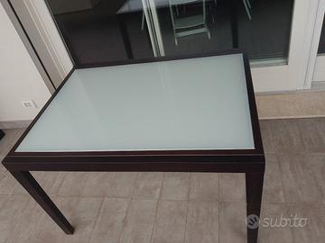 tavolo allungabile in legno color wengé. Ripiani in vetro temperato rimovibili.