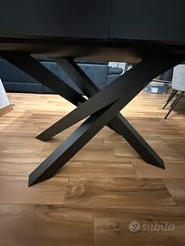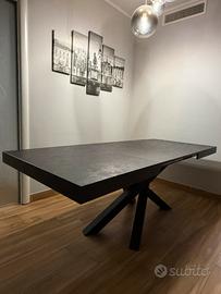 Tavolo allungabile modello Emma di Mobili Fiver colore nero cemento con gambe incrociate nere