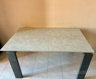 Vendo tavolo allungabile in ottime condizioni, dal design moderno e lineare. Struttura robusta in legno scuro e piano effetto cemento chiaro, facile da pulire e molto resistente.