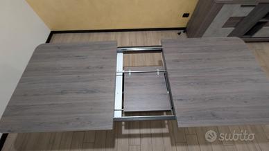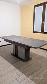 Vendo tavolo allungabile in stile moderno, finitura effetto legno grigio con base centrale dal design contemporaneo.