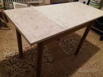 Tavolo Tavolo color bianco allungabile per 8 persone con disegno nerviture di materiale in pvc . Lunghezza normale 1mt allungabile 134 MT altezza 79 Info 3476864809